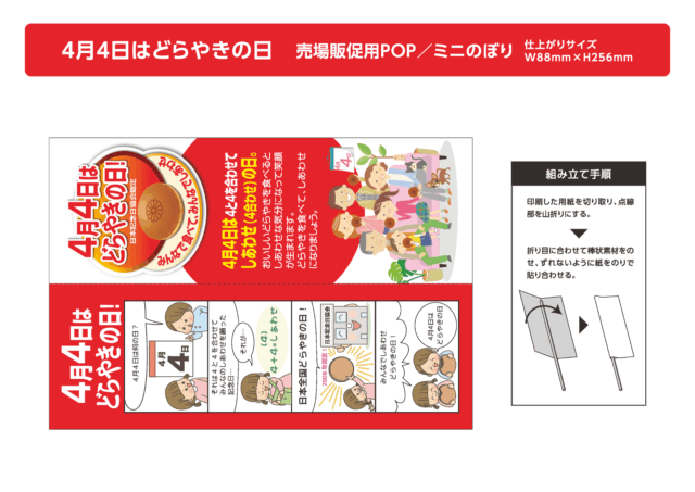 4月4日の「どらやきの日」をPRするミニのぼりです。
